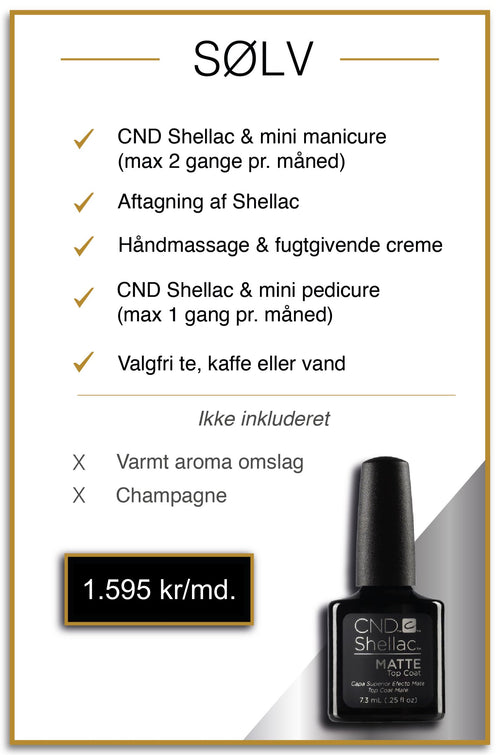 Abonnementet inkluderer to behandlinger med CND Shellac og mini manicure, samt en CND Shellac mini pedicure.