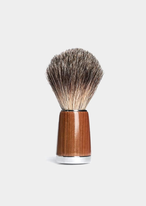 A high-quality shaving brush inspired by classic British heritage, designed to produce a rich and creamy lather for a smooth and comfortable shave. The brush features pure badger hair and a grip-friendly handle crafted from redwood and stainless steel, combining natural elegance with durability.