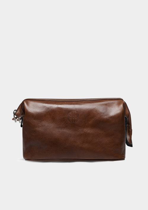 A toilet bag with a masculine and stylish design, crafted from genuine leather for a refined and durable finish. Available in classic brown and black, the bag combines functionality with timeless elegance. It features a secure zipper closure and includes an interior zip pocket for convenient organization of smaller essentials.