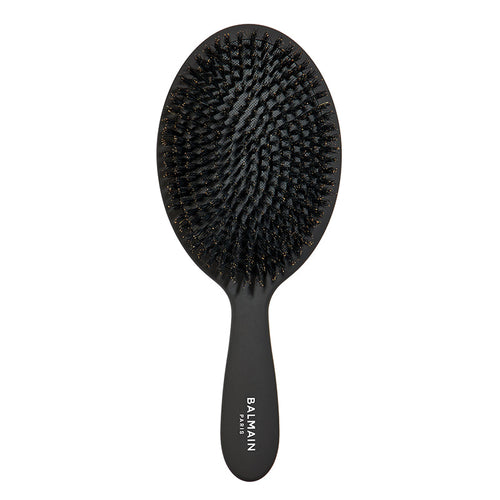 Balmain luxury spa brush er med både vildsvinehår og nylonbristler. Vildsvinebørstens naturlige egenskaber hjælper med at blødgøre og tilføre glans til håret ved at fordele talg fra hovedbunden til spidserne. Samtidig stimulerer nylonbørsterne hovedbunden og hjælper med at udglatte håret. Regelmæssig brug af denne børste forhindrer ophobning af olie i hovedbunden og kan øge blodcirkulationen,