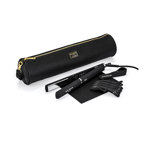 Med flere varmeindstillinger og en LED-skærm opvarmer strygejernene hurtigt til en maksimal temperatur på 220°C, mens den indbyggede automatisk slukningsfunktion aktiveres efter tredive minutters inaktivitet, hvilket gør dem perfekte til både salonbrug og brug derhjemme. Leveres med en varmebestandig måtte, praktisk taske, hårbørste, stylingklemmer og glansspray.