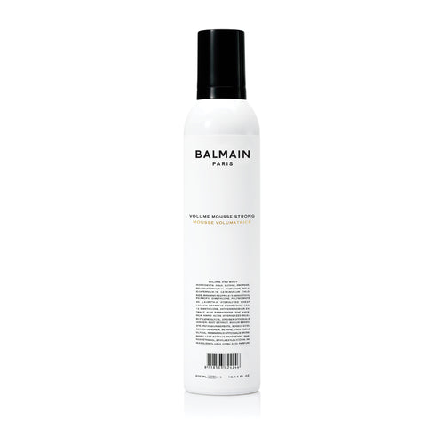 BALMAIN volume mousse strong er en fleksibel styling mousse, der giver langvarig effekt. Den tilfører straks volumen og blødhed til håret, samtidig med at den plejer, beskytter og glatter hårets skællag. Formlen indeholder ingredienser som silkeprotein og arganolie, der fremmer optimal bevaring af fugt i hårcellerne og samtidig reparerer og beskytter beskadiget, tørt og skrøbeligt hår.
