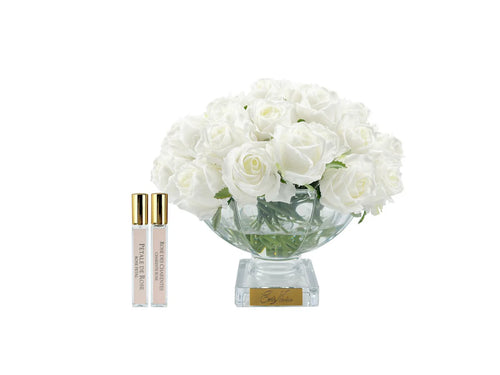 Inspired by provincial French village life, this Côte Noire floral arrangement features hand-crafted petals with a lifelike touch, infused with fine fragrances. Comes with 10ml Rose Petal and 10ml Charente Rose perfumes to enhance the scent, beautifully presented for display.